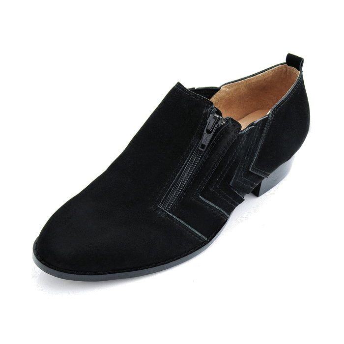 karine(MIT台灣製)全真皮牛巴戈車線拉鍊短靴-黑色