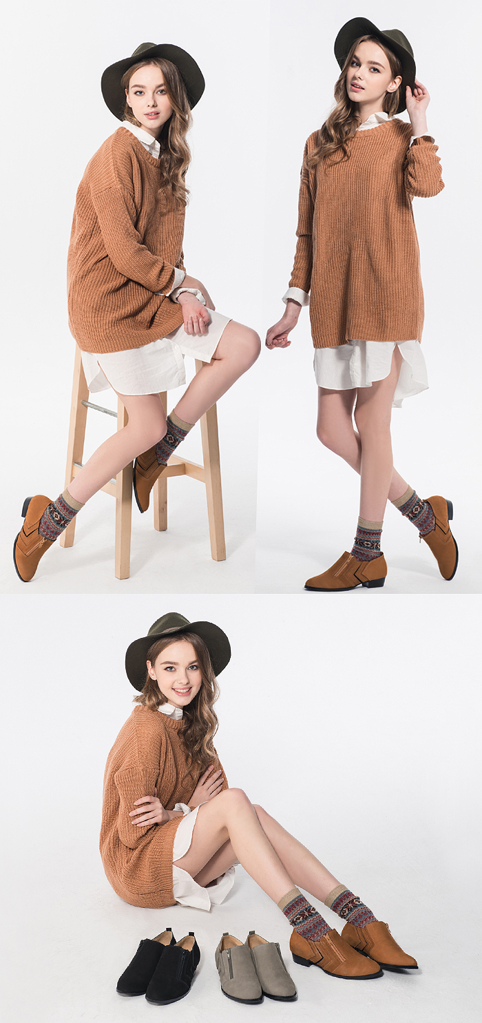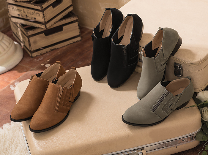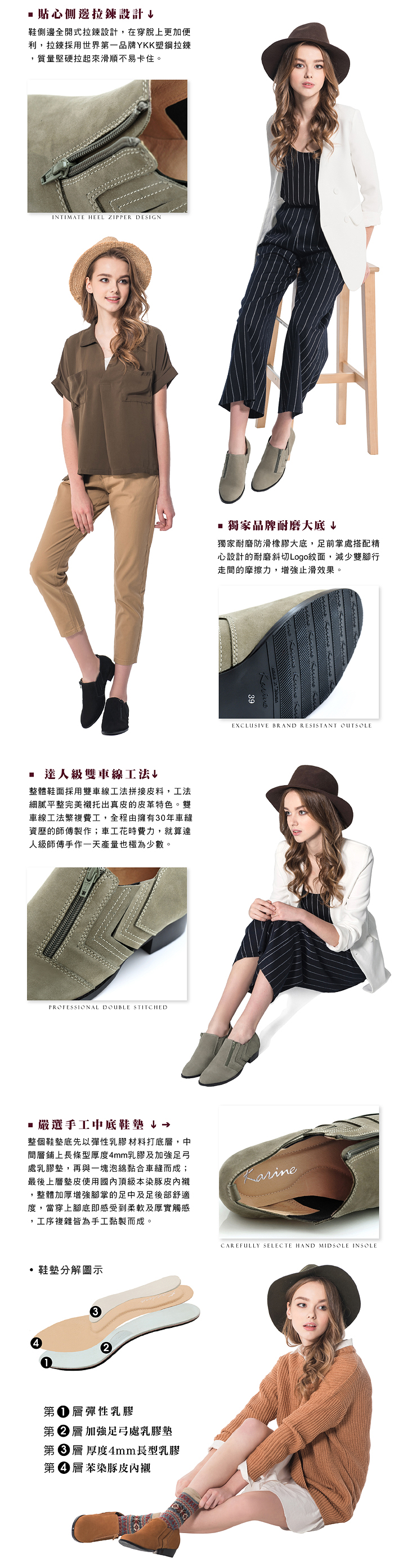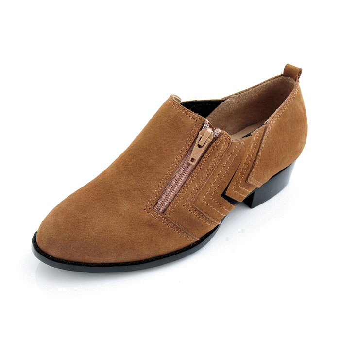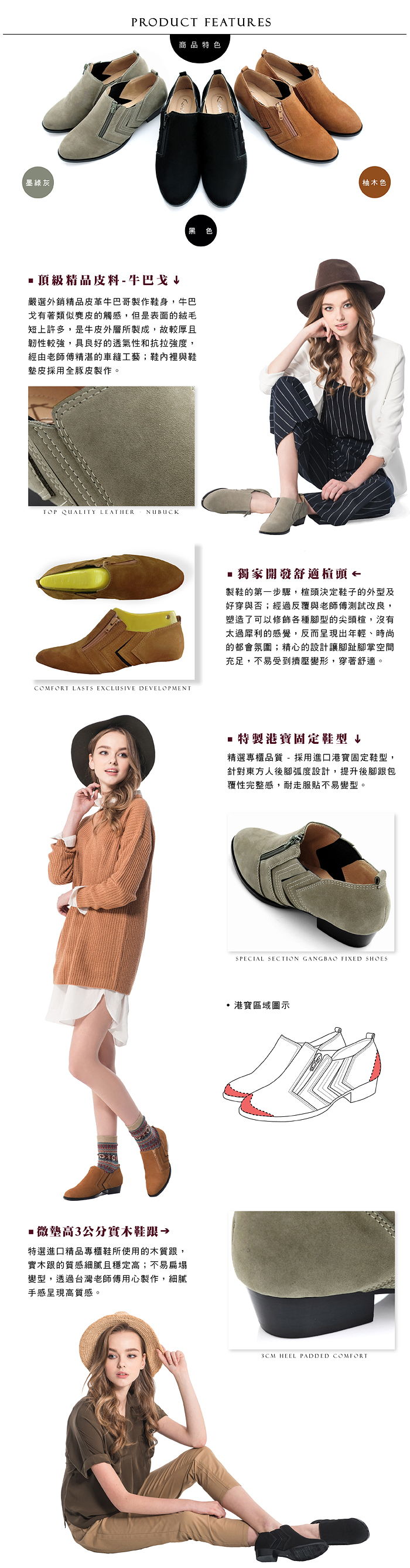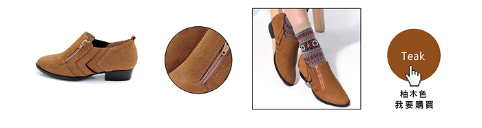 karine(MIT台灣製)全真皮牛巴戈車線拉鍊短靴-柚木色