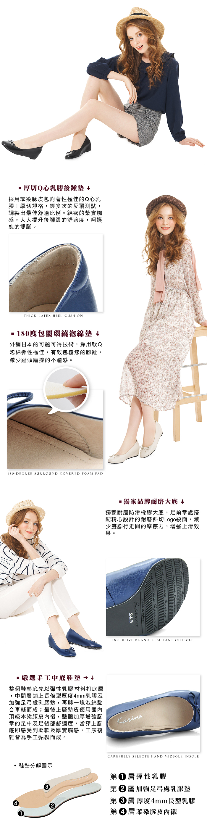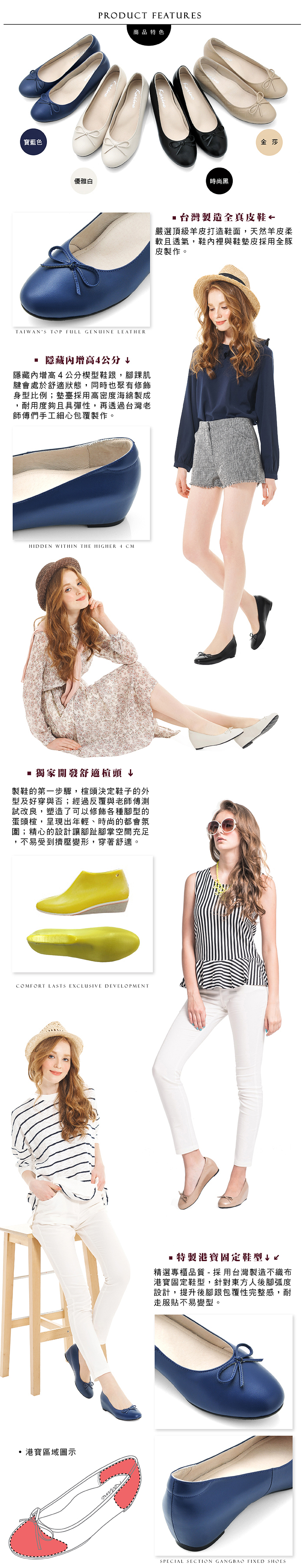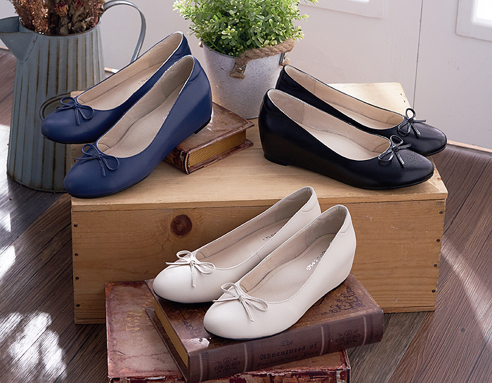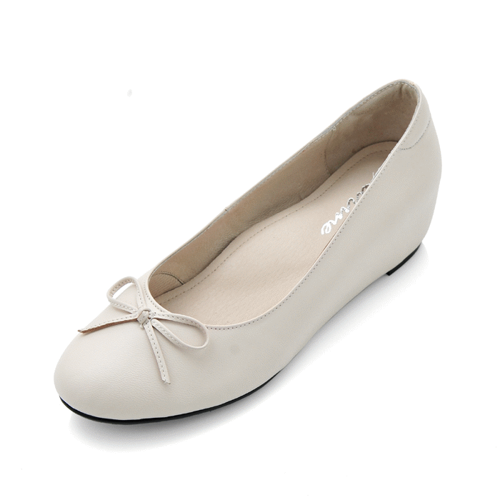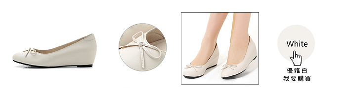 karine(MIT台灣製)全真皮格紋內增高楔型娃娃鞋-優雅白