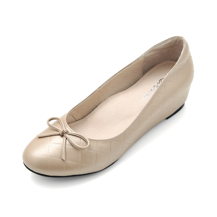 karine(MIT台灣製)全真皮格紋內增高楔型娃娃鞋-金莎