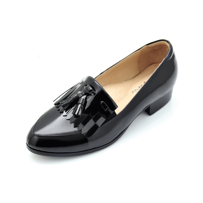 karine(MIT台灣製)全真皮流蘇低跟樂福鞋-原皮黑