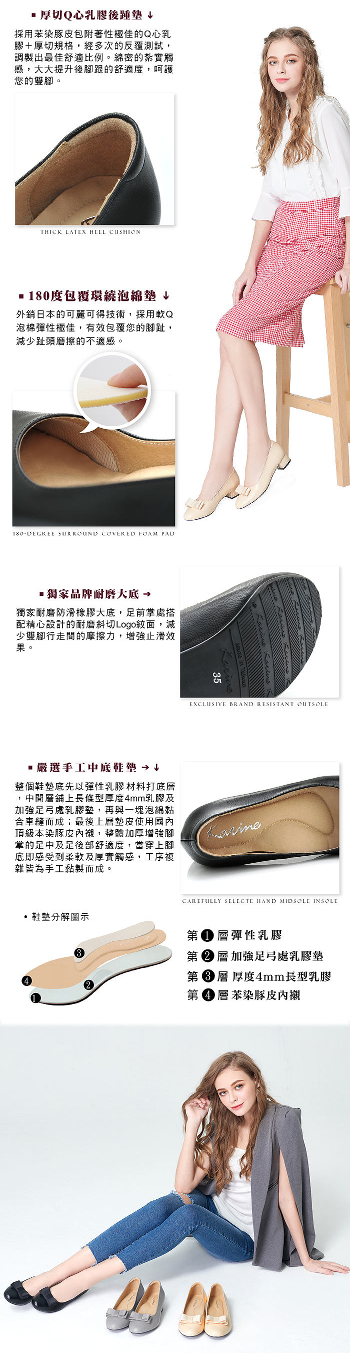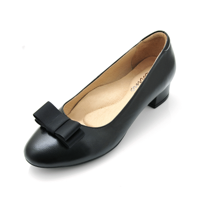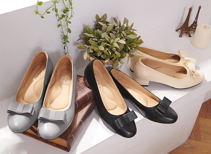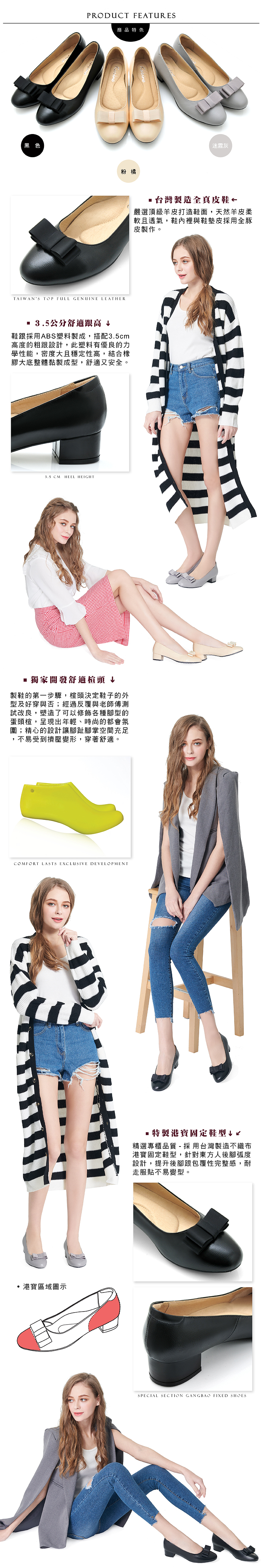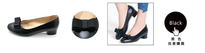 karine(MIT台灣製)全真皮緞帶蝴蝶結低跟包鞋-黑色