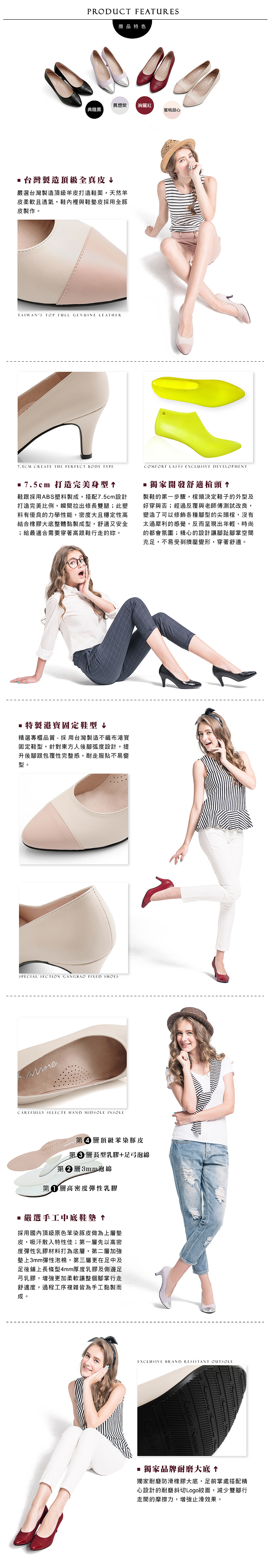 karine(MIT台灣製)全真皮拼色尖頭高跟鞋-異想紫