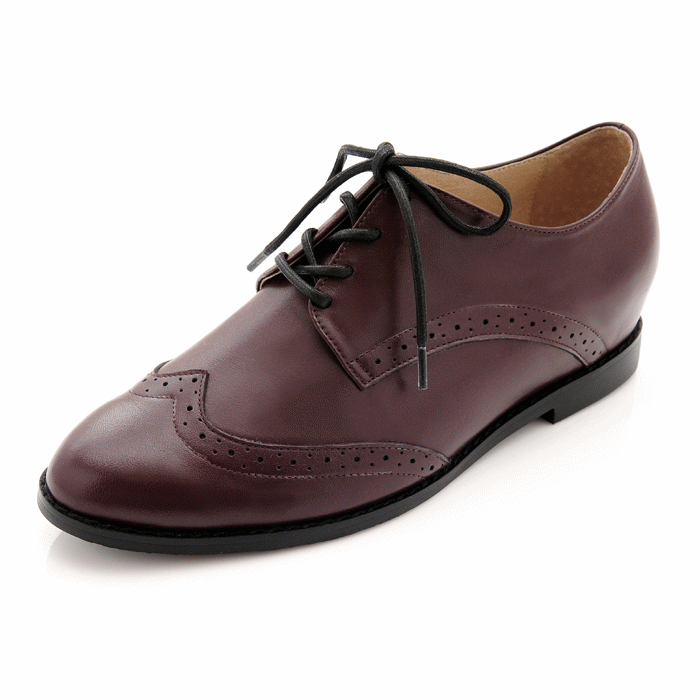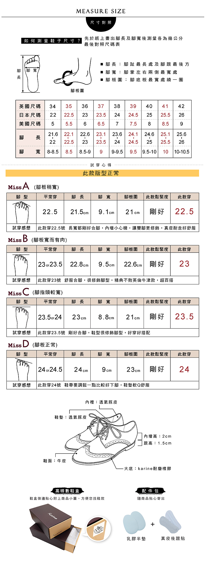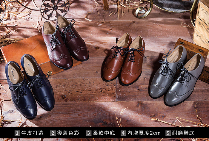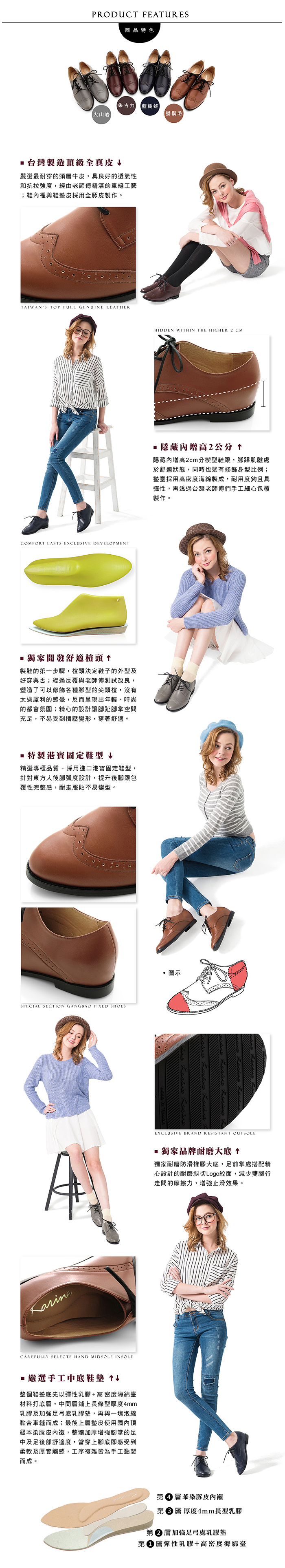 karine(MIT台灣製)全真皮綁帶內增高牛津鞋-朱古力