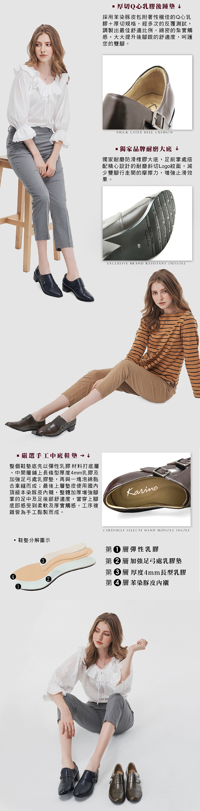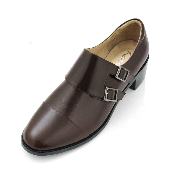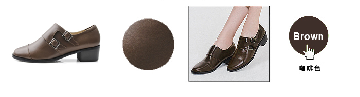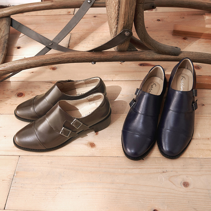 karine(MIT台灣製)全真皮雙釦帶低跟孟克鞋-咖啡色