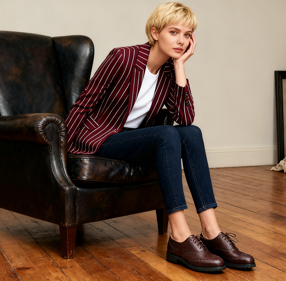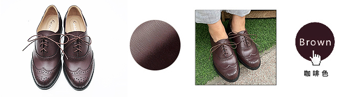 karine(MIT台灣製)全真皮寬楦綁帶雕花牛津鞋-咖啡色