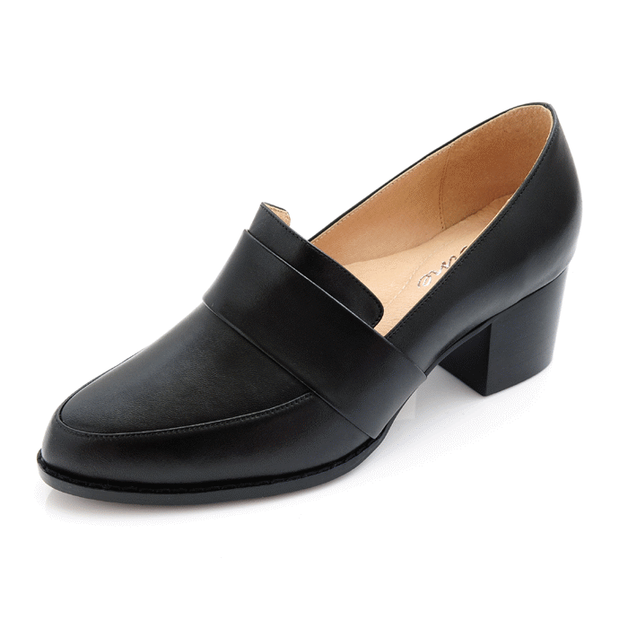 karine(MIT台灣製)全真皮素面粗跟樂福鞋-橄欖綠